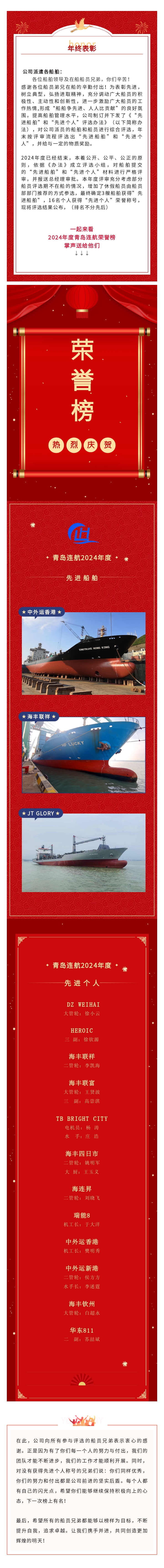 隆重表彰 │ 2024年度青島連航先進(jìn)船舶和先進(jìn)個(gè)人
